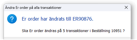 Flera transaktioner. Om fakturan eller beställningen innehåller flera transaktioner i statistiken, finns det också möjlighet att ändra dem samtidigt. Om dialogen bekräftas sparas begreppet på alla transaktioner knutna till t.ex. en beställning.