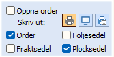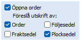 Om man väljer att inte öppna ordern, kommer föreslagna och eventuellt förändrade utskriftsalternativ att ske direkt när bekräftar dialogen. |