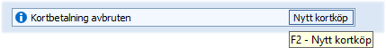 Om det automatiserade förslaget av kortbetalning används, d.v.s. "Föreslå alltid betalningssätt Kort" ska kortköpet först avbrytas med knappen "Avbryt kort" eftersom beloppet då har skickats direkt till terminalen.