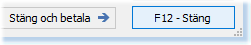När de fakturor som ska betalas i kassan har registrerats i första momentet, trycks knappen F12 - Stäng, för att stänga själva registreringen och gå till betalningsförfarandet. |