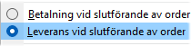 När en befintlig order öppnas för leverans och alternativet Leverans vid slutförande Order i menyn Alternativ är aktiverat kan raderna i ordern sorteras enligt de blanketter som används.