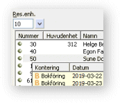 Dessutom visas lista med saldo och transaktioner för resultatenhet, projekt och specifikation vid konteringar där begreppen är angivna för registrering i kontoplanen. |