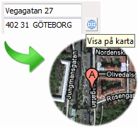 Visa på karta är en funktion kopplad till adressuppgifter på en kund registrerad i Winbas. Via registrerad besöksadress, utdelningsadress eller postadress kan man visa på platsen för adressen på kartan var som helst i världen genom en länk till Google maps. Väl inne i Google maps kan man sedan skriva ut, skicka eller få en vägbeskrivning till adressen. |