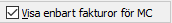 Om användaren har rättigheter är alternativet Visa enbart fakturor för användare i statusraden från början aktiverat, men kan väljas bort för att även se andras fakturor. |
