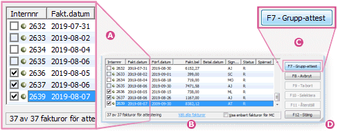 attestering av de fakturor som har bockats i listan.
