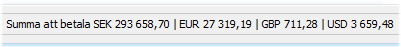 Då summorna visas i fönstrets statusrad kan fönstret behöva göras bredare när ett antal olika valutor förekommer. |