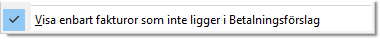 Visa enbart fakturor som inte ligger i Betalningsförslag är