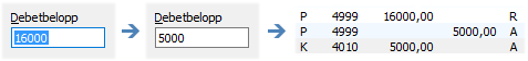 Fakturans föreslagna nettobelopp minskas till det egna beloppet och preliminär motkontering på attestkontot reduceras automatiskt. |