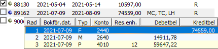 Knapplistan används för att se bakomliggande konteringar