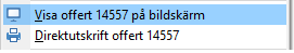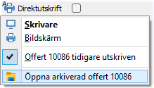 Genom att klicka på symbolen för direktutskrift är det också möjligt att via samma meny ta fram en tidigare utskriven offert från Blankettarkivet i de fall man använder arkiverade offerter.