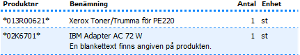 Text som skrivs i fältet kommentar syns endast i Produkter och används enbart som information. Denna text används aldrig vid utskrift av blanketter.