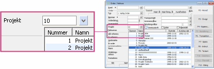 Alternativet kan anges på projektet och innebär att när projektet väljs t.ex. i Order / faktura, kommer kunden angiven på projektet, leveransadress m.m. automatiskt att fyllas på ordern. Ingen kund behöver anges innan, utan utgångspunkten för registrering blir istället projektbegreppet. |