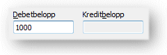 Enbart ett av dessa fält kan innehålla ett värde, vilket innebär att om debet har ett värde, kan inte kredit registreras. Vid registrering i det ena fältet inaktiveras det andra fältet som då inte kan användas för registrering.
