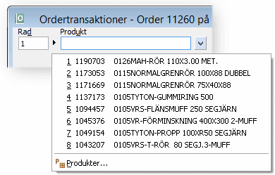 I t.ex. registreringrutinerna Offert / Order / Serviceorder / Beställning / Inleverans samt Transaktioner för dessa återfinns funktionen för att kunna välja de sista registrerade eller de använda posterna.