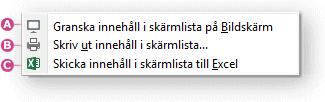 Genom att välja utskrift till bildskärm kan t.ex. vidare