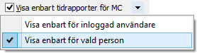 Kombinationen innebär att enbart den valda användarens tider alltid visas i listan. |