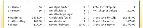 Försäljning avser total försäljningssumma sedan senaste Z-dagrapport togs ut.
