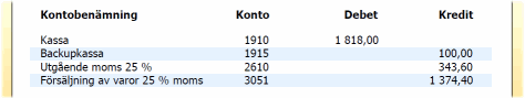 Utseendet på verifikationerna bestäms av de inställningar man har gjort i avsnittet Bokföring via integration under Inställningar Kunder.