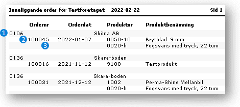 kundorder efter fakturering skrivs ut på listan. Om en order