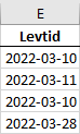 Välj först ordertypen reserverad för fasta order. Växla därefter urvalet från Leveranstid till Nästa datum för fasta order och ange ett intervall för datum, kopplade till registrerade datum för fasta order. |