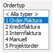 Ordertyp används för att skriva ut order med en viss ordertyp, t.ex. ordertyp 1 vanlig order. Välj den ordertyp i listan som ska skrivas ut eller välj alternativet <Alla typer> för att inkludera order oavsett ordertyp vid utskriften. Notera att intervallet Ordernummer även kan användas i detta sammanhang eftersom varje ordertyp har en egen ordernummerserie.