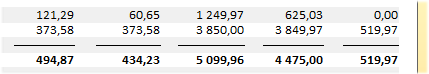 Beroende på vilka kolumner som har valts in i rapportens design kommer följande summor att påverkas: