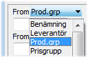 Genom att ange ett eget urval på valfritt begrepp i produktregistret, istället för standardalternativet produktgrupp, kan utskrift göras på det valda begreppet. Detta innebär lagervärderingen även kan väljas baserat på t.ex. prisgrupp eller inom ett intervall av leverantörer registrerade som produktens huvudleverantör. |