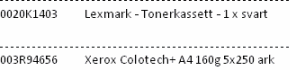 alternativa produktnummer på slutet. Rapporten kan därefter