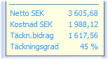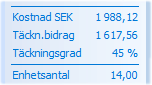 Dessutom kan ytterligare uppgifter om t.ex. kostnad och täckningsbidrag väljas in och visas permanent i kassabilden tillsammans med övriga summor. Detta innebär att man slipper öppna vyn med detaljerade summeringar, och att valda uppgifter då alltid visas på ordern. |