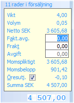 Förutom t.ex. ordersumma, rabatt och moms som alltid visas, kan då t.ex. följande väljas in: