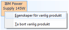 Egenskaper. Om en befintlig snabbknapp på något sätt ska förändras t.ex. med justering av displaytext eller annan färg väljs alternativet Egenskaper i menyn vid högerklick. Ta bort. Samma meny används även när en tidigare registrerad vanlig produkt ska tas bort från arbetsytan. |