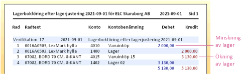 lagerbokföring vid lagerjustering när detta