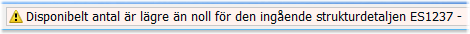 Om strukturprodukter används utförs samma kontrollpå underliggande detaljer om så är inställt. Varningen påvisar då motsvarande brist som i strukturöversikt där det disponibla antalet saknas på någon produkt.