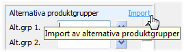 Inläsning av data från fil skapad i t.ex. Excel med transaktioner som utgör underlag av alternativa produktgrupper som används för organisering av produkterna i webshop i de fall produkten kan ingå i flera olika avsnitt.