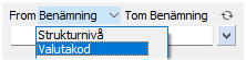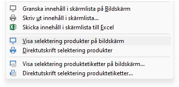 Ett annat sätt är att ifrån produktkortet först välja valutan i en blank skärm och därefter knappen F10 - Selektera. I listan som visas kan sedan en rapport väljas genom att högerklicka på den.