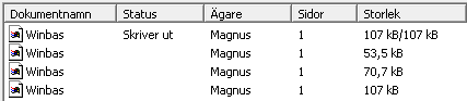 I exemplet ovan görs en utskrift om fyra sidor och alla sidor hanteras i detta fall tillsammans som ett enda skrivarjobb.