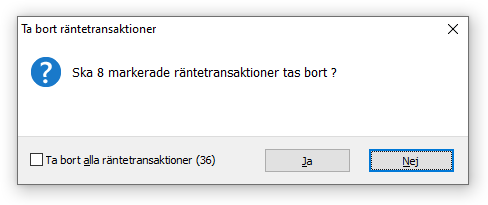 I vissa fall medges även att alla poster i det aktuella registret kan tas bort. Detta gäller främst i sammanhang då systemet själv har skapat ett större antal transaktioner via någon typ av automatisk körning. Ett exempel på detta är vid Inventering.