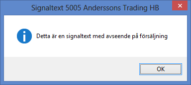 Signaltext för kund kan visas som dialogruta och OK