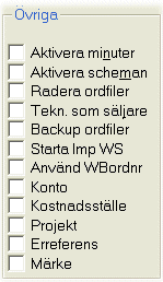 Konto/Kostnadsställe/Projekt. Om rutorna inte aktiveras kommer samtliga konteringar att hämtas från WinServs orderfil. Med någon/några aktiverade kommer konteringar att hämtas från Winbas Produktgrupper.