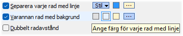 Kombinationen Varannan rad med bakgrund och Separera varje rad med linje i figuren till höger kan även kombineras för att öka kontrasten mellan varje rad och samtidigt ha en ljusare bakgrundsfärg.