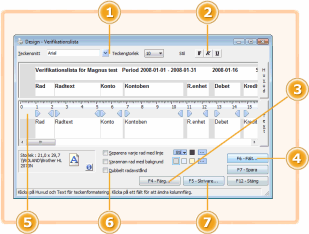 Design av listor där utskriften består av en rubrikrad och repeterande rader till sidans slut. För varje utskrift finns en uppsättning fält som kan väljas i efter behov. Rubrik och rader kan sedan ha olika egenskaper i form av teckensnitt och färg. |