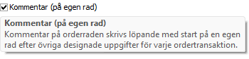 Kommentar i designen. När kommentar har valts in, visas också fältet för kommentaren i designen under övriga uppgifter. Kommentaren kan då tilldelas egenskaper som skiljer den i utseende.