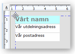 Klicka på linjalen till vänster om en grupp för markering av HEL GRUPP (sidhuvud, rader eller sidfot).