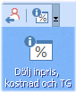 Knappen eller ikonen indikerar att inpriser, kostnader, TB och TG visas i öppna skärmbilder där dessa förekommer. Om funktionen väljs kommer dessa uppgifter att döljas. |