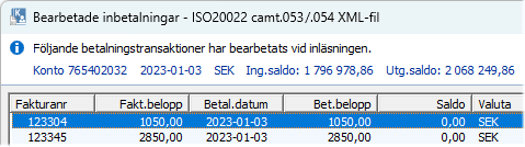 ISO20022 camt.053 /.054 XML-fil utför inläsning av
