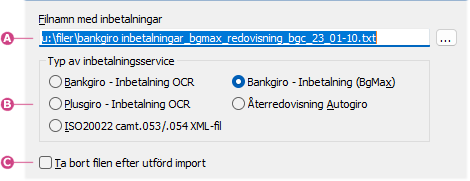 Dialogen Inläsning av OCR och andra inbetalningar från fil