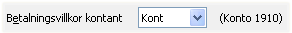 Om angivet betalningsvillkoret har ett angivet konto, visas detta i till höger om betalningsvillkoret. Om betalningsvillkoret inte har ett konto, kommer istället konto Kassa angivet i allmänna inställningar att användas.