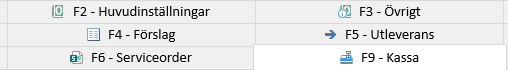 Notera att betalning med kort finns alltid med bland övriga betalningssätt, detta innebär att Kassan alltid har minst två betalningssätt; Kontant och Kort. Utöver konton för kassa - kontant används normalt följande konton från kontoplanen: