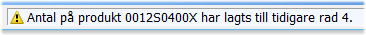 Inställningen bestämmer om ett meddelande och ljudsignal ska ges när antalet läggs till en tidigare rad med samma produkt. En specifik ljudsignal kan då också indikera att produkten redan är registrerad, t.ex. när en trådlös handskanner används och registreringen sker en bit ifrån själva kassaterminalen.