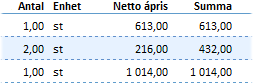 mellan sista raden och delsumman. Linjens bredd bestäms av